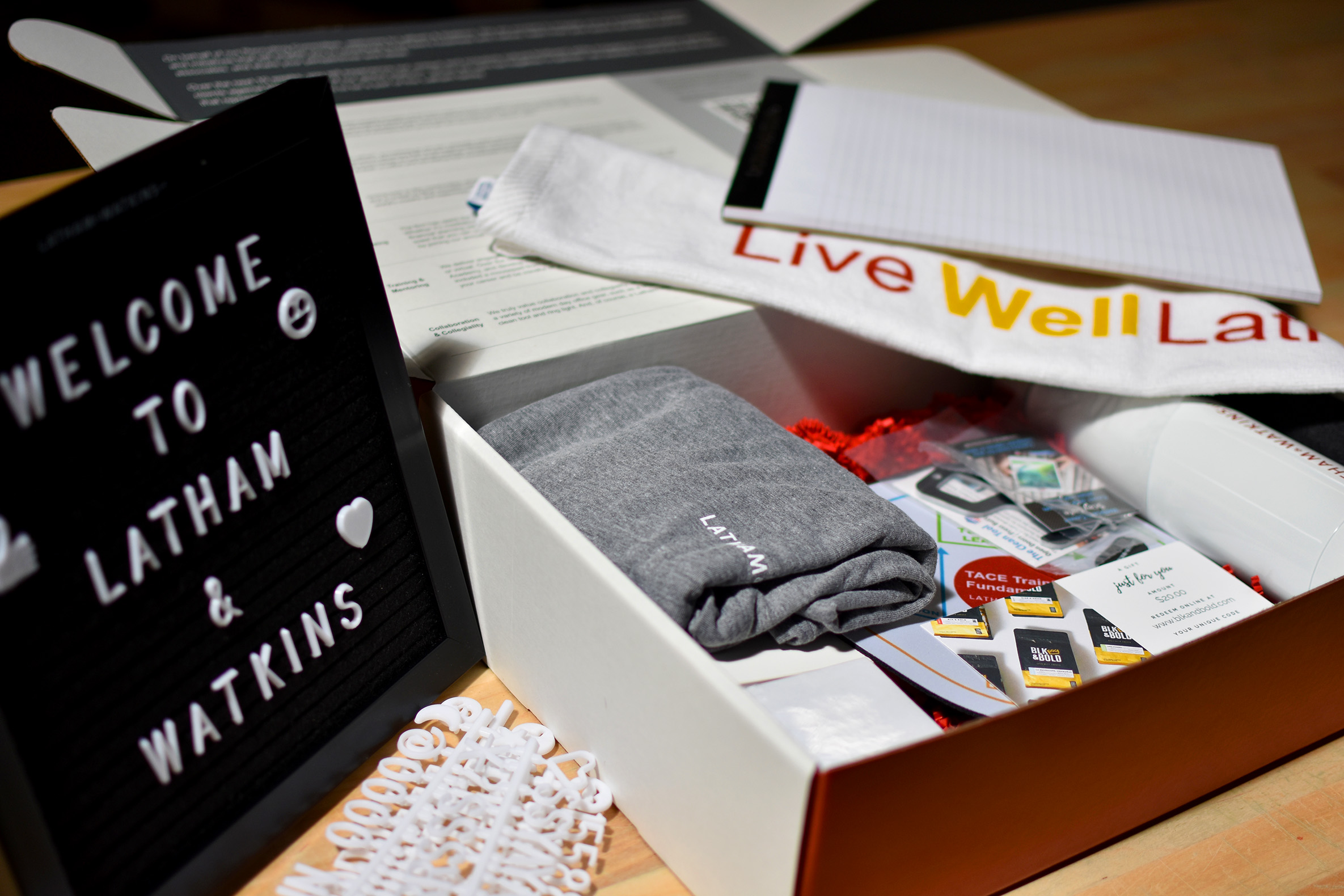 Latham & Watkins, a prestigious law firm based in Washington, D.C., boasts numerous offices globally. Every summer, the firm welcomes new associates with a thoughtfully curated “Welcome to Team Latham” package filled with high-quality company merchandise. Tray plays a vital role by expertly producing these packages and guaranteeing that they are delivered accurately, securely, and promptly, ensuring a smooth and inviting introduction to the team.